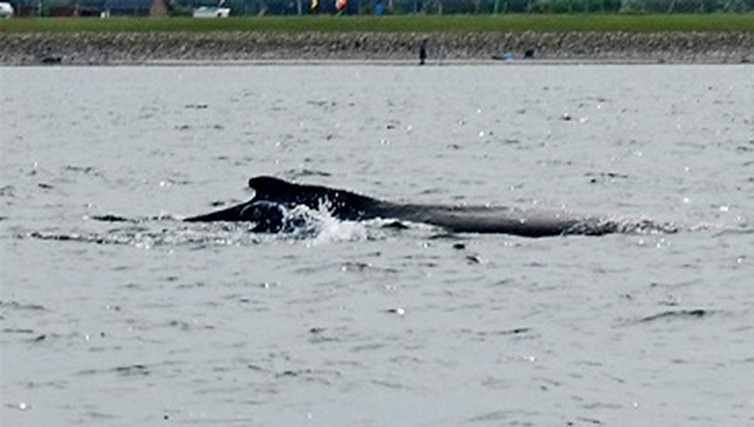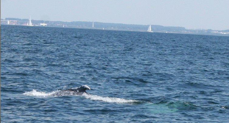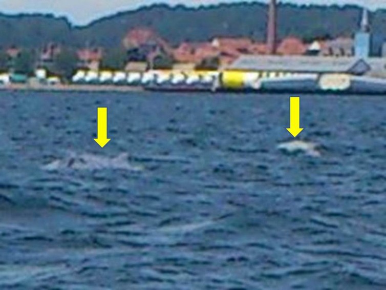 Sichtung zweier Wale im Aabenraa Fjord. Ausschnitt aus Lea Poulsens Foto vom 22.7. 2014