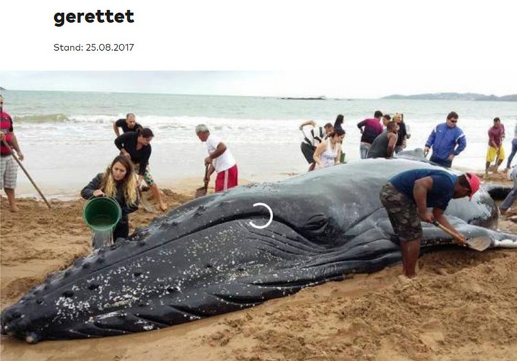 Freitag den 25. 08. 2017 Ein an der brasilianischen Küste gestrandeter Buckelwal konnte gerettet werden