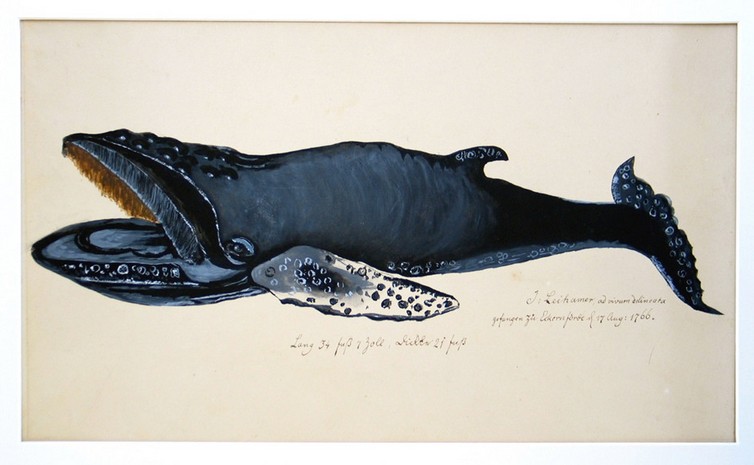 Der am 17. August 1766 nach siebenstündiger Jagd im Eckernförder Hafen erlegte Buckelwal wurde von Johan Leihamer in Form einer Gouache dargestellt. Diese Darstellung lag dem Magistrat der Stadt Eckernförde bereits am 20. August 1766 vor, wie aus dem städtischen Protokoll hervorgeht: