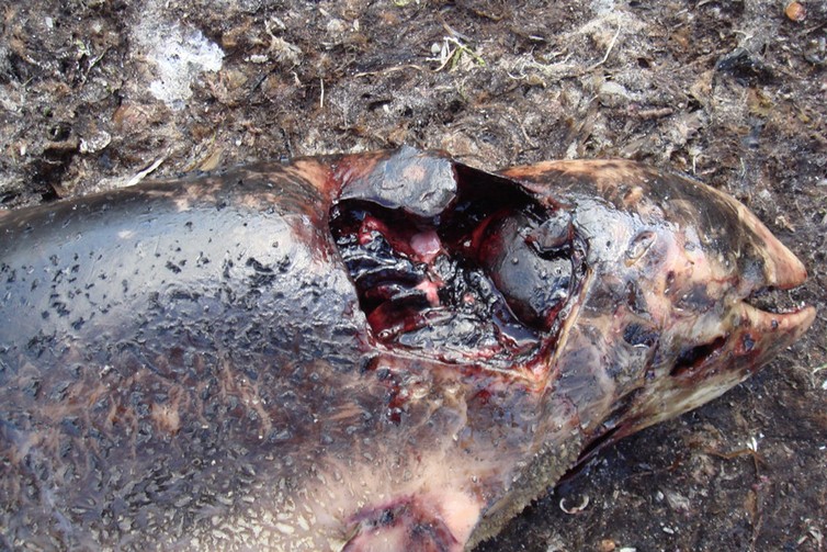 2. Bockholmdorf: Meldung durch Surfer über Wasserschutzpolizei Flensburg am 20. Juli abends: der ca. 50 bis 60kg schwere Kadaver wird vom Bauhof Glücksburg geborgen und verpackt; Tiefkühltruhe Nieby