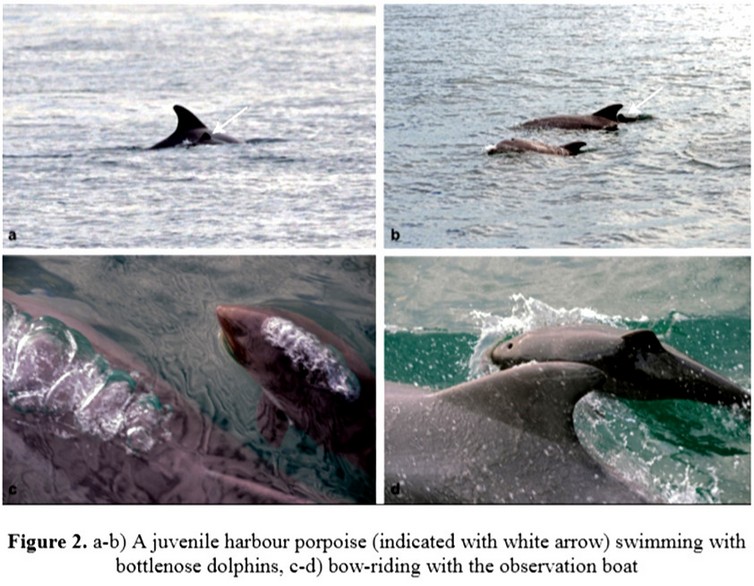 Die Autoren berichten über eine Beobachtung am 25. April 2015 im Marmarameer 0,7 NM vor der Küste auf Pos. 40° 60.000 N 28° 59.897 E. Während 113 Minuten wurde beobachtet, wie ein 90 bis 110 cm großer Schweinswal (Phocoena phocoena Linnaeus, 1758) neben einem Gr. Tümmler (Tursiops truncatus Montagu, 1821 ) schwimmt. Um Energie zu sparen, nutze er nach Einschätzung der Autoren wahrscheinlich die Strömung des neben ihm schwimmenden Gr. Tümmlers. Das Marmarameer ist mit jährlich 46000 Schiffsbewegungen eine sehr stark befahrene Wasserstraße ; daher liege die Vermutung nahe, dass die erfahrenen Gr. Tümmler den unerfahrenen , vermutlich noch nicht einjährigen Schweinswal begleiten, um ihn sicher durch den dichten Schiffsverkehr zu leiten.
