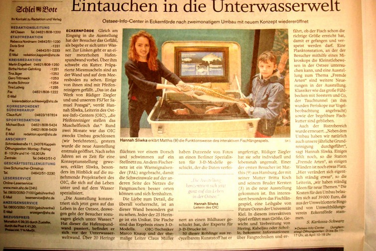 Freitag den 9. März 2018 shz auf Seite 10 Eckernförde: Eintauchen in die Unterwasserwelt
