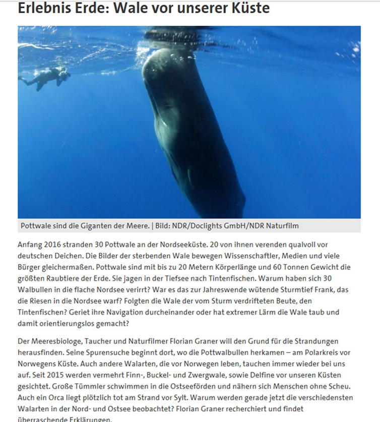NDR- Naturfilm sendet am Montag den 5.februar um 20:15 im 1. Programm der ARD den Film WALE VOR UNSERER KÜSTE
