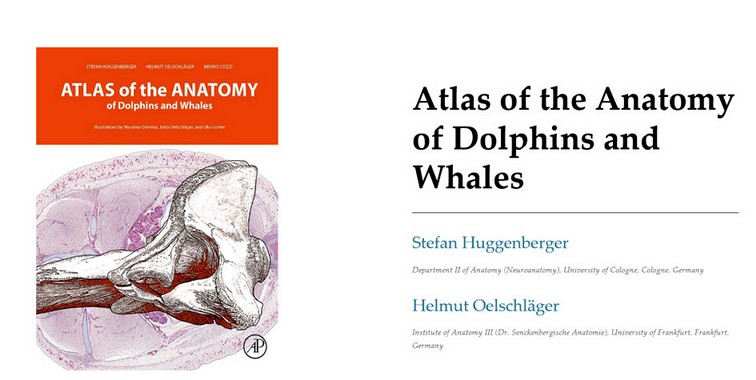 Der vorliegende, mit Spannung erwartete englischsprachige Atlas von Stefan Huggenberger und Helmut Oelschläger ist ein absolutes „Muss“ für Studierende der Veterinärmedizin, Wissenschaftler und Interessierte. Unter den 27 Arten, deren Anatomie dargestellt wird, ist der Große Tümmler Tursiops truncatus (Montagu, 1821) am häufigsten vertreten, aber es gibt auch Präparate und Bilder anatomischer Strukturen von 6 Schnabelwalarten (Familie Ziphiidae) und sogar von beiden Zwergpottwalarten ( Familie Kogiidae Gattung Kogia). Die Abbildungen auf 479 Seiten zeigen dank der CT/ MRTs, der Fotos von Präparaten, histologischen Schnitten und schematischen Zeichnungen die makroskopische und mikroskopische Anatomie samt Embryologie der untersuchten Arten so klar, dass sich vieles von selbst erklärt und kaum Wünsche offen bleiben. So wurden die Schädel einiger im Buch vertretenen Spezies der Zahnwale so abgebildet, dass eine Zuordnung und Artbestimmung danach eigentlich keine Schwierigkeiten mehr bereiten dürfte. Eindrucksvoll auch die Schnitte durch Föten in verschiedenen Entwicklungsstadien, die Gegenüberstellung von MRT und Präparat, aber auch älteren schematischen Darstellungen, sowie die dazugehörigen Histologie. Hin und wieder findet sich eingestreut die Abbildung eines menschlichen Schädels neben einem Schweinswalschädel, eines menschlichen Gehirns unter (!) dem eines Großen Tümmlers oder das Röntgenbild einer menschlichen Hand. Verschiedene Fotos der artspezifischen Gehörorgane finden sich ebenso, wie die nach Lokalisation und Art unterschiedlichen Wirbel. Vielleicht sollten die Autoren bei einer Neuauflage auch die beeindruckende Anatomie der Columna vertebralis des Weißschnauzen-Delphins Lagenorhynchus albirostris (Gray, 1846) und/oder des Weißflankenschweinswals Phocoenoides dalli (True, 1885) berücksichtigen, stellen sie doch den bisherigen Endpunkt einer langen Entwicklungsreihe dar.