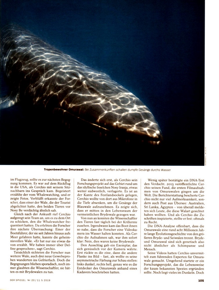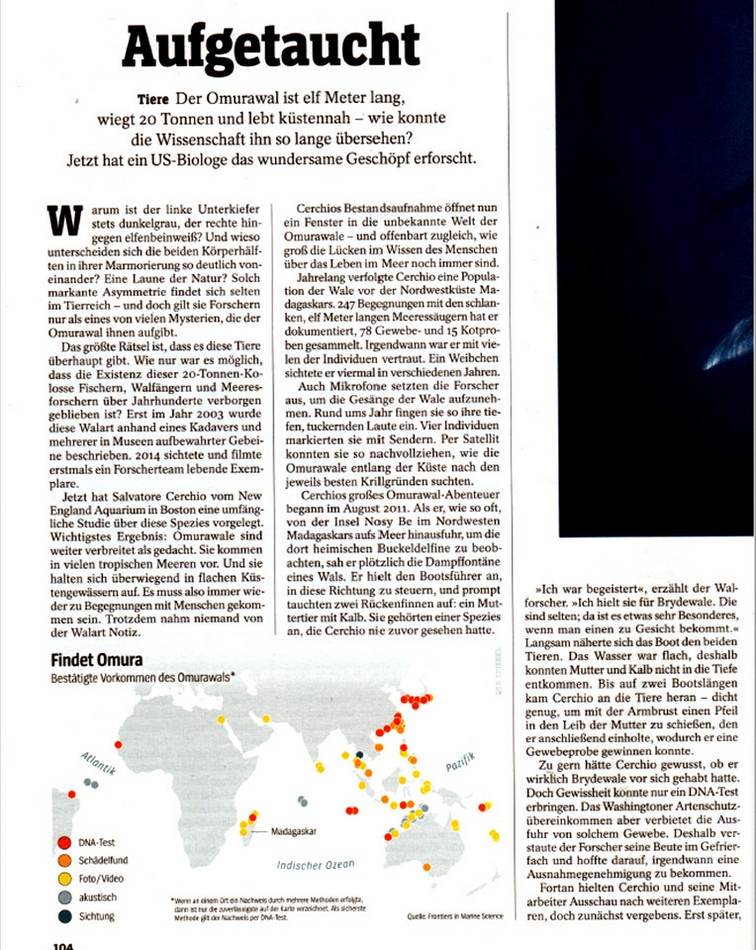wer den "Spiegel" nicht liest wird den beigefügten Bericht aus der aktuellen Ausgabe (Nr. 20 vom 11. Mai) über neueste Forschungsergebnisse zur Verbreitung und Verhalten des Balaenoptera omurai vielleicht von Interesse finden.