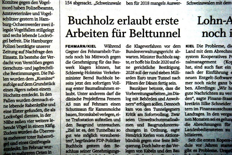 Freitag den 3. Mai 2019: shz S 6 Neue Sorgen um Schweinswale Buchholz erlaubt erste Arbeiten für Belttunnel