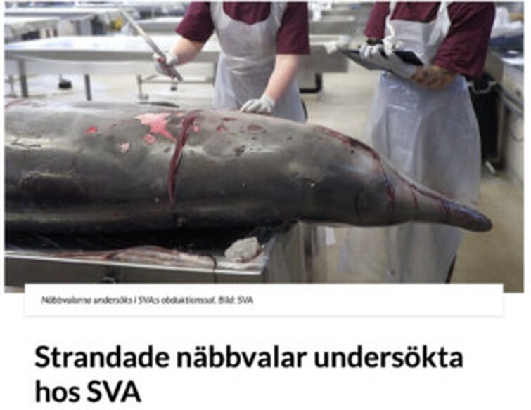 „Ende Juli wurden drei gestrandete Schnabelwale auf der Halbinsel Bjäre gemeldet. Einem gelang es, sich zu befreien, während die anderen beiden starben. Beide Wale, ein Weibchen und ein Männchen der Art Sowerby-Schnabelwal, wurden bei der SVA in Uppsala untersucht, aber die Ursache der Strandung ist noch unklar.“
