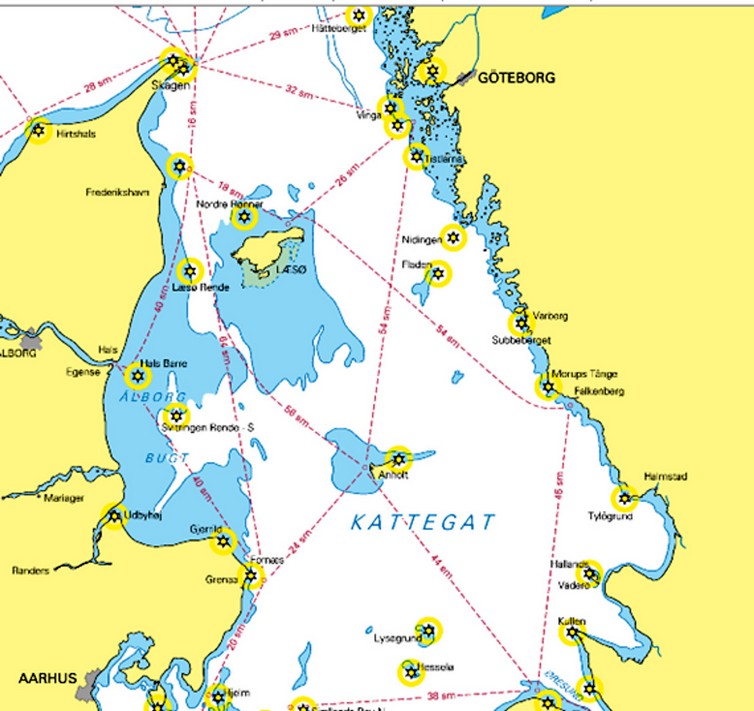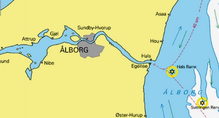 Foto vom Samstag den 11. April 2020 im Limfjord an der Steuerbordtonne aus NordJyske Foto: Daniel Løth Nielsen; Karte des östlichen Limfjords NV Charts