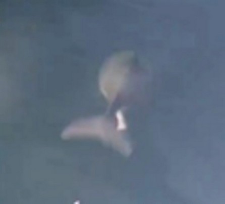 Auf einem längeren Video ist zu sehen, wie der weibliche Delphin, der sich offensichtlich langweilt, eine Delphinshow abzieht, besser, als in jedem Delphinarium. Die Sprungsequenz am Schluss des Clips zeigt einen sehr weit hinten liegenden Genitalschlitz, sodass an der Geschlechtsbestimmung kein vernünftiger Zweifel besteht.