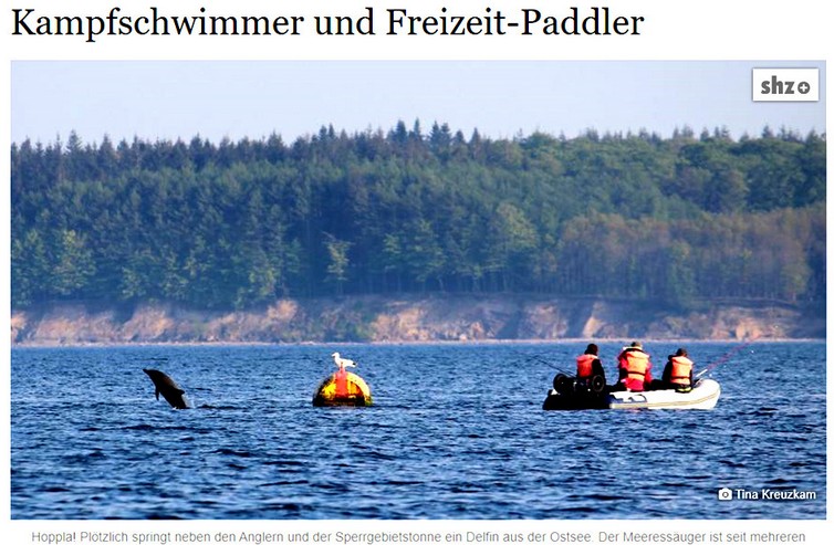 Wie der shz unter den lokalen Nachrichten veröffentlicht bekam der Eckernförder Delphin am Wochenende Besuch von einem Stand Up Paddler, der mit seiner Tochter zur Sperrgebietstonne paddelte, und sich sogar ins Wasser begeben hat, um dem Delphin noch näher zu kommen. Am gleichen Tag haben Kampfschwimmer der Bundeswehr sogar ein Unterwasservideo aufgenommen.