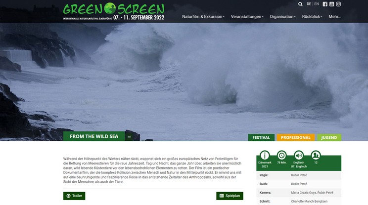 Samstag 24. September 2022 Green Screen Festival Eckernförde 2022 Sieger in der Kategorie „Bester Meeresfilm“