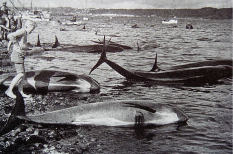Massenstrandung von 63 Langflossen-Grindwalen im Vejle Fjord am 22. September 1954 (Kinze et al. 2011)