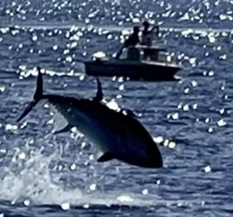 Auf Facebook berichten Morten K. Holm Hansen und Kim Olesen am 17. August 22 über ein Erlebnis vor Helsingör:„Nach einer Stunde mit nicht viel Aktivität ist plötzlich etwas passiert. Am Ende haben wir 100 springenden Riesen Thunfische um uns herum beobachtet, von denen einige vielleicht 4.500 kg gewogen haben! Enorm gr0ße und blitzschnelle Riesen jagen fliehende Heringe und Hornfische, in einiger Entfernung konnte man die Spritzer hören, wenn sie landeten.“ www.hvaler.dk