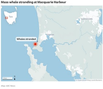 Donnerstag 22. September 2022 230 Grindwale stranden an der Küste Tasmaniens und 14 Pottwale bei King‘s Island