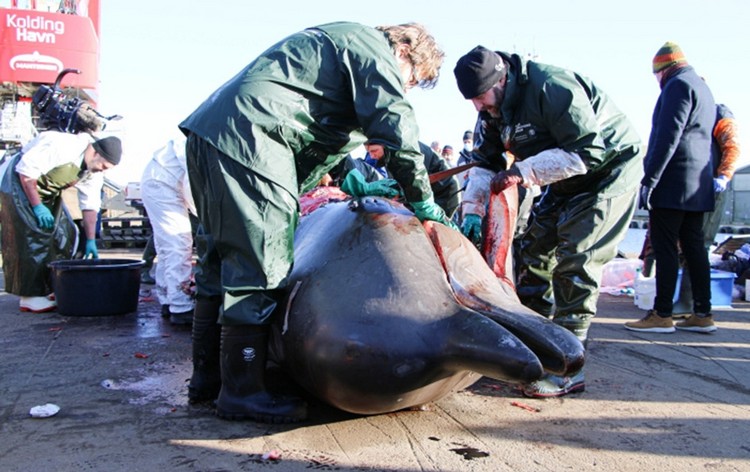 Es stellte sich heraus, dass es sich um einen Nördlichen Entenwal (Hyperoodon ampullatus) handelte – ein Zahnwal, der zur Familie der Schnabelwale gehört. Die tieftauchenden Wale haben keine Überlebenschance im flachen Wasser und ist leider am Mittwochmorgen, dem 26. Januar 2022, verendet. Der auch Døgling genannte Entenwal wurde von dem örtlichen Schlepper „Casper“ zur anschließenden Autopsie und Skelettierung in den Hafen von Kolding geschleppt. Martin Pedersen, einer der lokalen Mitarbeiter und Taucher, half dabei, ein Schleppseil um den Schwanz des Wals zu legen, damit er geborgen werden konnte.