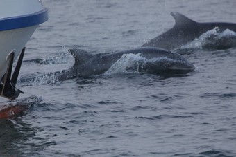 Vielen Dank an Sönke M. Hoffmann, der seine Videos zur Verfügung stellt. Hier einige Screenshots aus den Filmen. Die Großen Tümmler sind zu sehen, wie sie vor dem Bug des Segelschiffs mit einer Geschwindigkeit von ca. 6 Knoten schwimmen.