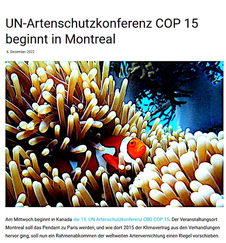 Mittwoch 7. Dezember 2022 Konferenz zum Schutz der Biodiversität COP 15 startet in Montreal