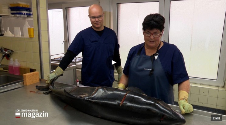 Am Montagabend im NDR - Fernsehen und in der heutigen Ausgabe des shz auf Seite 3 Schleswig – Holstein wird über den Besuch des Umweltministers Tobias Goldschmidt im Institut für Terrestrische- und Aquatische Wildtierforschung der Stiftung tierärztliche Hochschule Hannover berichtet. Er darf der Leiterin des Instituts Frau Prof. Prof. h. c. Dr. Ursula Siebert bei der Sektion eines Schweinswals von der Insel Sylt über die Schulter schauen und erfährt einiges über den Zustand der Schweinswalpopulation in Nord- und Ostsee, der es nicht gut, sondern ausgesprochen schlecht geht. Die renommierte Wissenschaftlerin hat zusammen mit ihren Mitarbeiterinnen im Auftrag des Umweltministeriums 2022 die Daten von 218 toten Schweinswalen erfasst und musste dabei feststellen, dass sich die Situation für die Schweinswale seit Jahren verschlechtert. Weibliche Tiere in der Ostsee werden im Durchschnitt weniger als 4 Jahre, in der Nordsee weniger als 6 Jahre alt. Insgesamt ist die die Lebenserwartung von 20 bis 30 Jahren in früheren Zeiten jetzt auf 10 Jahre gesunken. Damit einher geht ein verminderter Fortpflanzungserfolg, da weibliche Schweinswal erst mit 4 Jahren geschlechtsreif werden. Als Ursachen benennt die engagierte Tierärztin und Veterinärpathologin den Müll in den Meeren, die Belastung mit Schadstoffen, der Lärm und die Fischerei. All das führe zu mehr Krankheiten und Totfunden. Die extreme Mortalität sei nicht auf ein vermehrtes Auftreten der Art zurückzuführen, da der Bestand an Schweinswalen zurückgehe, wie die letzten Zählungen ergeben hätten. Viele Schweinswale litten neben Erkrankungen an einer Schädigung des Gehörorgans: „Ein blinder Schweinswal kann sich weiter perfekt orientieren, ein gehörloser ist über kurz oder lang zum Tode verurteilt.“ Deswegen ist sich Frau Professor Siebert mit dem Umweltminister Tobias Goldschmidt einig in der Forderung zur Einrichtung eine umfassenden Meeresschutzgebietes, eines Nationalparks Ostsee.