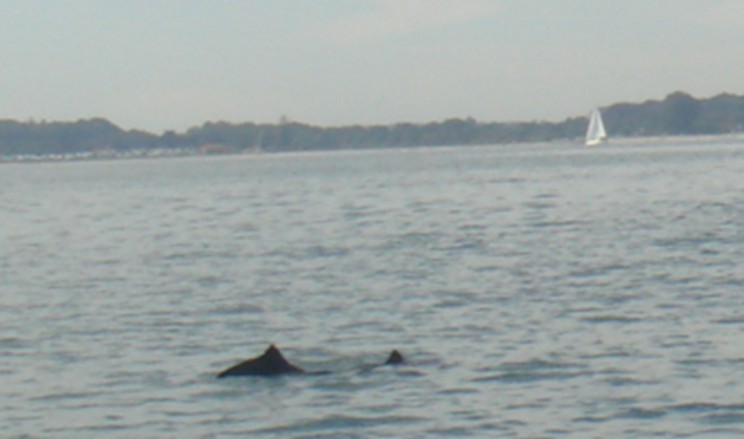 Um 12h20 beobachten wir unter Segeln in Küstennähe auf ca. 54°35,5' N 010°02,4 E eine Schweinswalmutter mit ihrem Nachwuchs, die sich dem Boot auf etwa 10m nähern. Am 20. 08. 23 haben wir um 12h30 im gleichen Seegebiet ebenfalls eine Mutter mit Kind beobachten können. Da weibliche Schweinswale relativ ortsgebunden sind, ist es nicht ausgeschlossen, dass es sich bei beiden Beobachtungen um dieselben Schweinswale gehandelt hat. Stellnetze haben wir in dem Gebiet nicht entdeckt, wohl aber mehrere schnellfahrende Motorboote, im Gegensatz zur ersten Beobachtung gab es diesmal keine Jetskis auf dem Wasser.