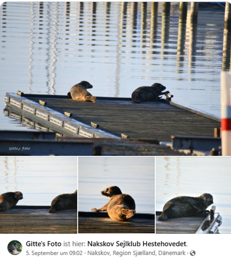 05. 09. 2023 Seehunde auf dem Steg des Segelclubs Naskov DK www.hvaler.dk