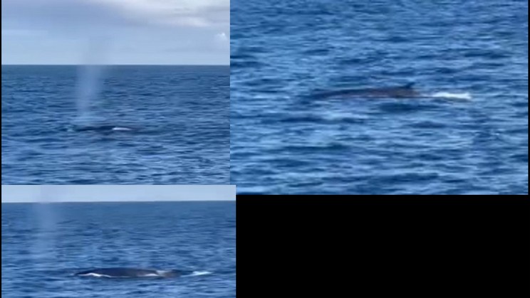 Screenshot aus dem Video von 65 Seemeilen nordwestlich von Hanstholm DK kreuzt ein Wal die Route einer Fähre (?). Auf dem Video ist der Furchenwal nur einmal kurz auftauchend und blasend zu sehen. www.hvaler.dk