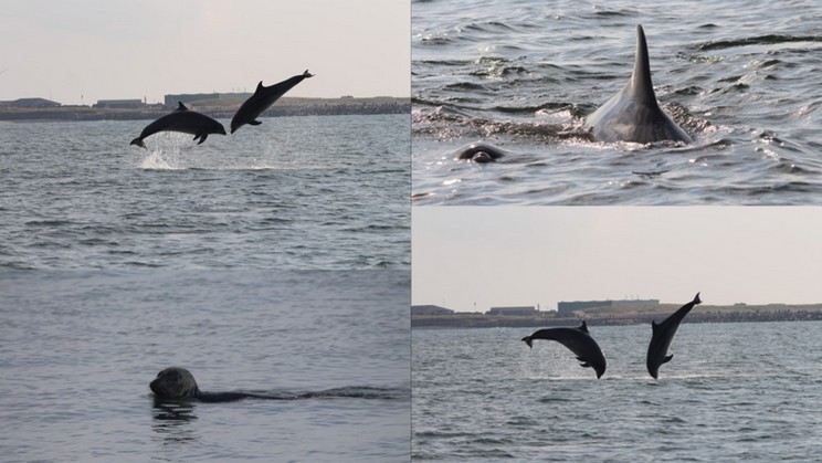 Henning Svindberg die Kegelrobbe und die Gr. Tümmler vom Boot noch um 22h MEZ fotografiert. Bei den Gr. Tümmlern handelt es sich vermutlich um eine Koalition zweier männlicher Individuen.
