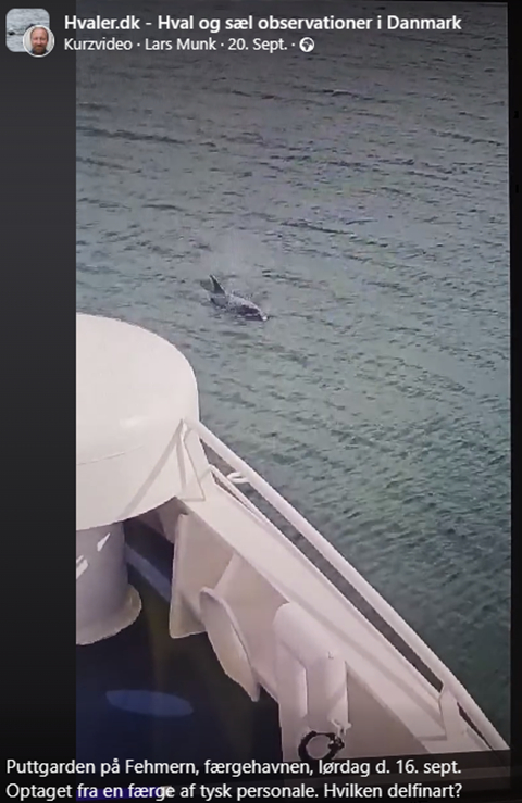 Am 16. September 23 filmt Lars Munk von der Fähre Puttgarden – Gedser einen Gr. Tümmler