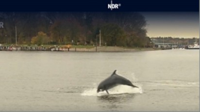 „Delle“ oder „Yoda“ ist seit gestern 15.11. 23 wieder in der Trave zu beobachten. Sreenshots aus dem Video des NDR
